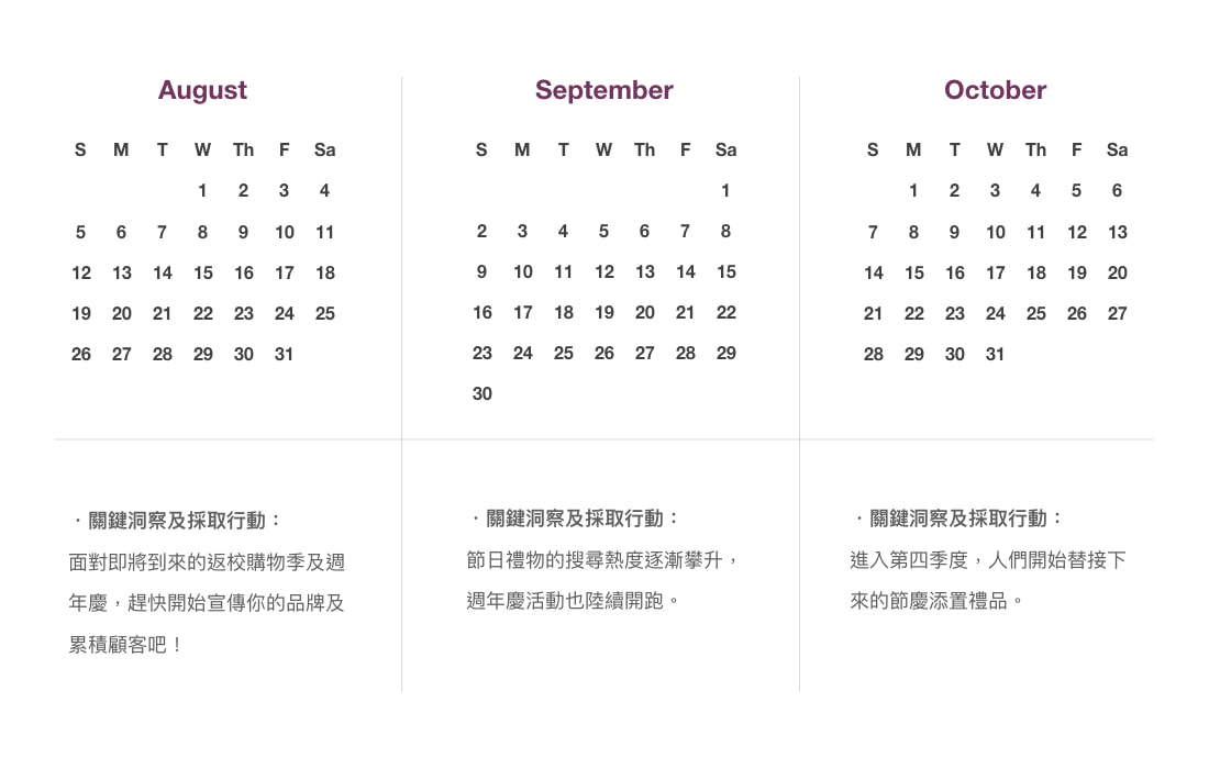 隨著返校購物及週年慶如火如荼的展開,除了與線上顧客建立互動,收集這些潛在客戶,預先做好後續節日銷售的準備。