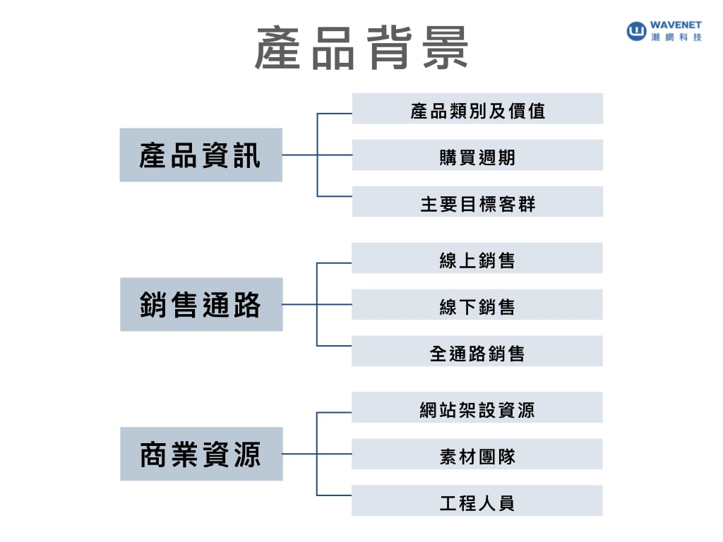 一、產品資訊:產品類別及價值、購買週期、主要目標客群