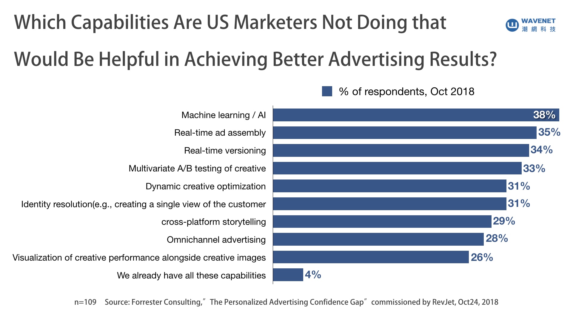 (各種提升廣告成效的工具中,AI 是最被忽略的工具之一。數據來源:eMarketer 圖片來源:潮網科技)