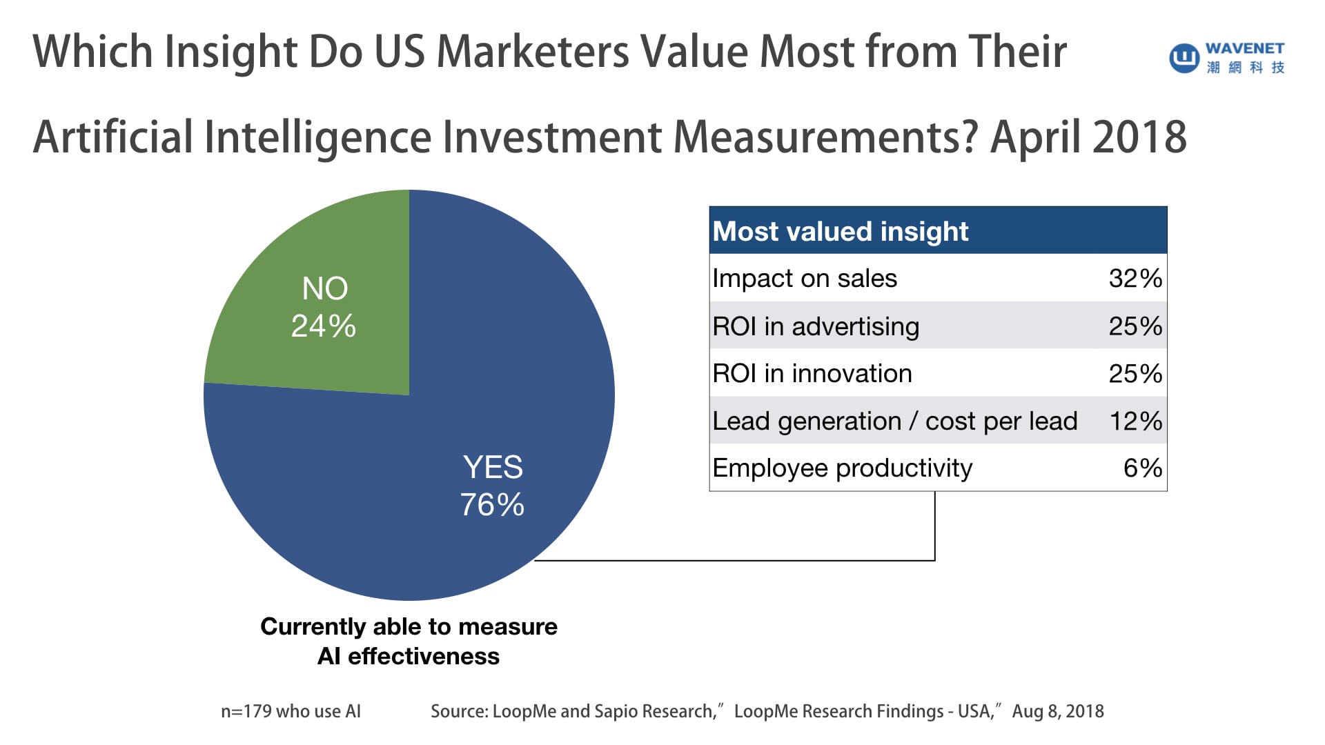 (行銷人員多數認為 AI 應用所帶來的效益是正面且可量化的。數據來源:eMarketer 圖片來源:潮網科技)