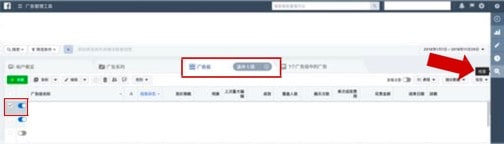 Step 1. 在廣告管理員中的「廣告組合」層級,打開廣告組合並找到右方黑色按鈕。