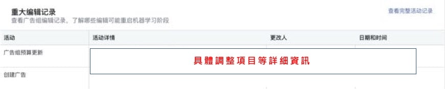 對於有多個管理員的帳號,可以透過這個區塊具體了解「誰」做了「什麼」,而這些更動是否影響投放成效。